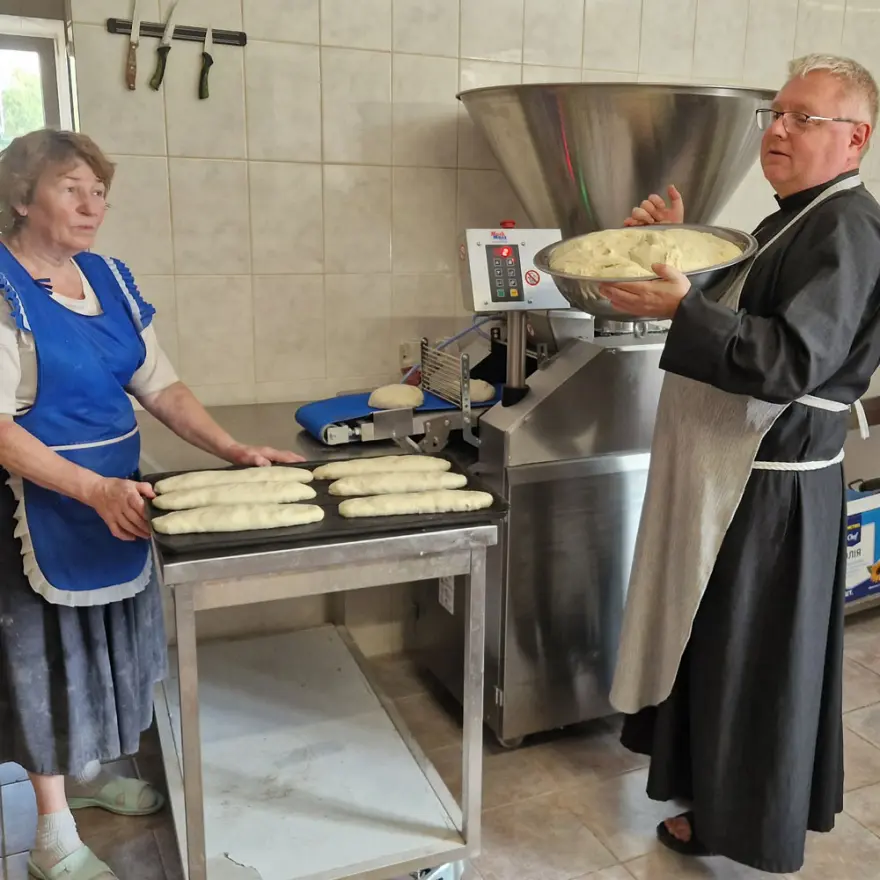 Mitten im kriegsgeplagten Saporischja, nur wenige Kilometer von der Frontlinie entfernt, leisten die Albertinerbrüder seit Jahren unerschütterliche Nothilfe. Ein zentraler Bestandteil ihrer Arbeit ist die tägliche Versorgung der Bevölkerung mit Lebensmitteln – darunter vor allem selbst gebackenes Brot, das für viele Menschen zur wichtigsten Lebensgrundlage geworden ist.